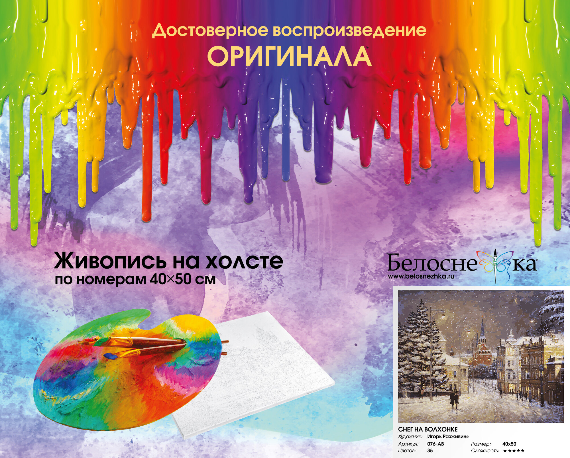 На сегодняшний день товар «Живопись на холсте "Снег на Волхонке" 40х50 см (076-AB) Белоснежка» можно купить с кешбеком в 1 магазине: Яндекс.Маркет