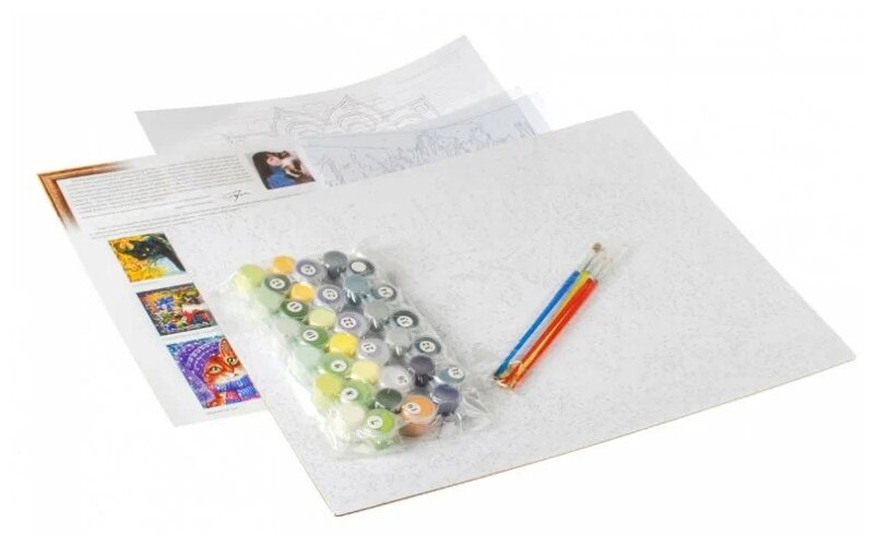Цифрорисовашка устроена предельно просто: на основу из картона приклеена белая бумага, на которую нанесен рисунок, разбитый на пронумерованные сектора. Живопись по номерам 30х40 см. комплектуется акриловыми красками на водной основе, которые не обладают резким и неприятным запахом, что, в первую очередь, гарантирует безопасность при использовании красок. С помощью них и вашей усидчивости результат непременно оправдает личные ожидания и заставит восхищаться любого.