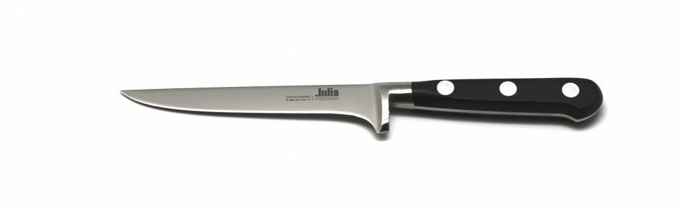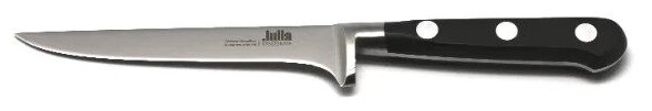 Нож обвалочный – неширокий нож удобен для отделения жил от мяса мясо от костей, хотя по длине и форме достаточно универсален и часто используется для нарезки любых продуктов, а также при разделке курицы, рыбы, не очень крупных овощей.