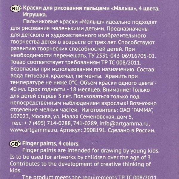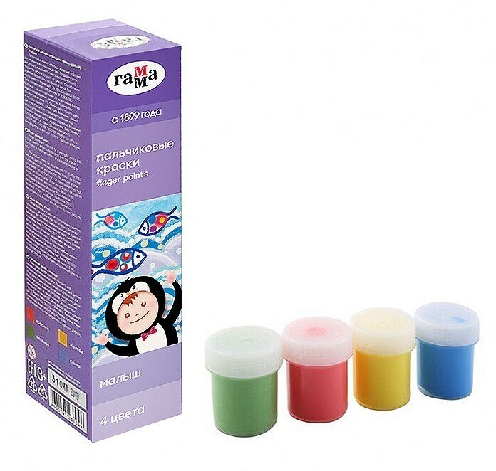 Краски пальчиковые "Малыш" (4 цвета 40 мл) (2908191) ГАММА