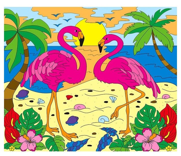 Холст с красками 25х30 см "Два фламинго у моря" (Х-2572) Рыжий кот