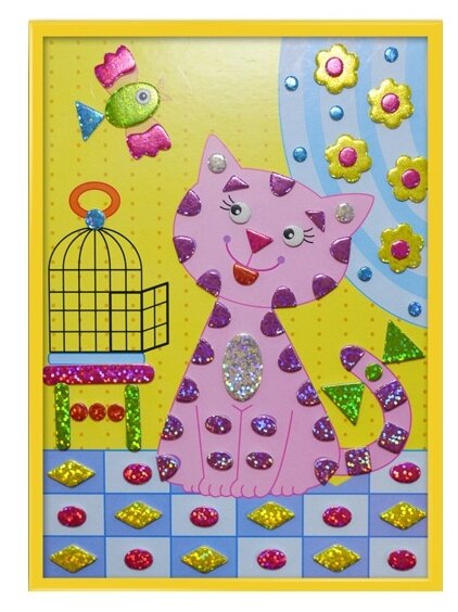 В комплекте: Картонная основа с рисунком, пластина с самоклеящимися деталями из ЭВА с голографической пленкой.