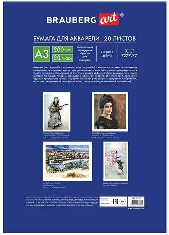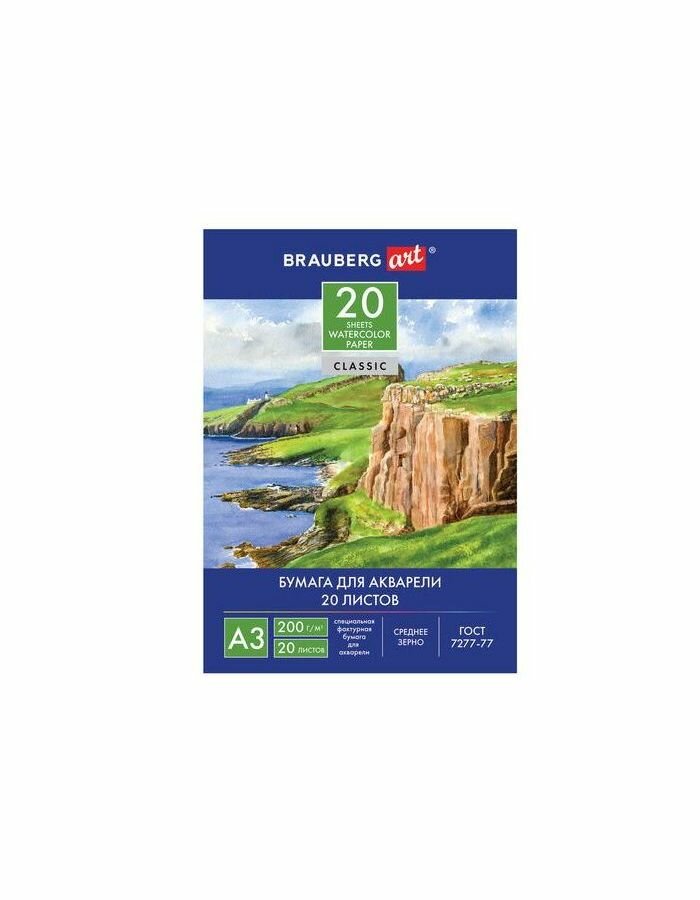 Бумага для акварели BRAUBERG. среднее зерно, 200г/м2.
