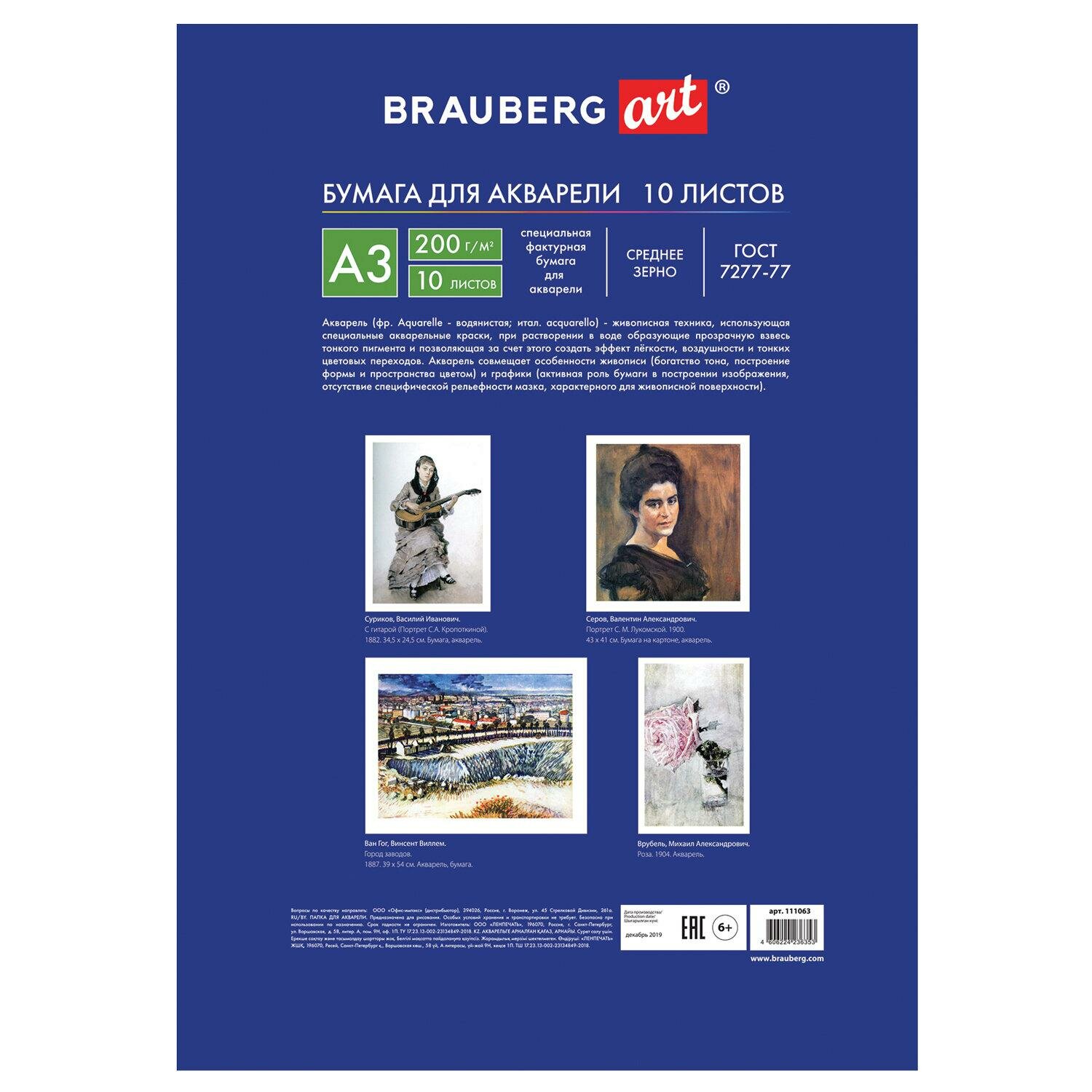 Бумага для акварели BRAUBERG. среднее зерно, 200г/м2.