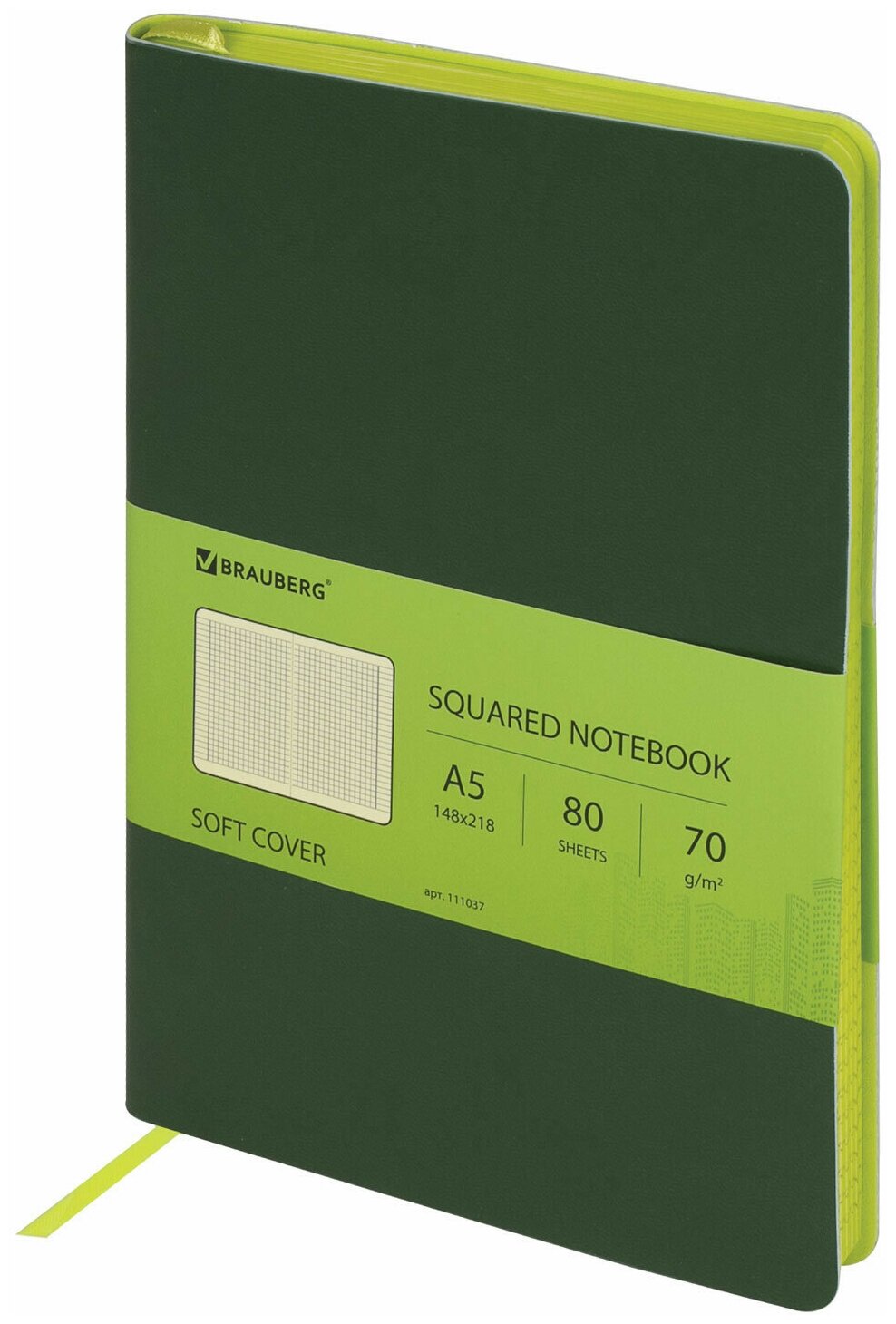 Бизнес-блокнот А5 80 листов "Metropolis Mix" темно-зеленый (111037) Brauberg
