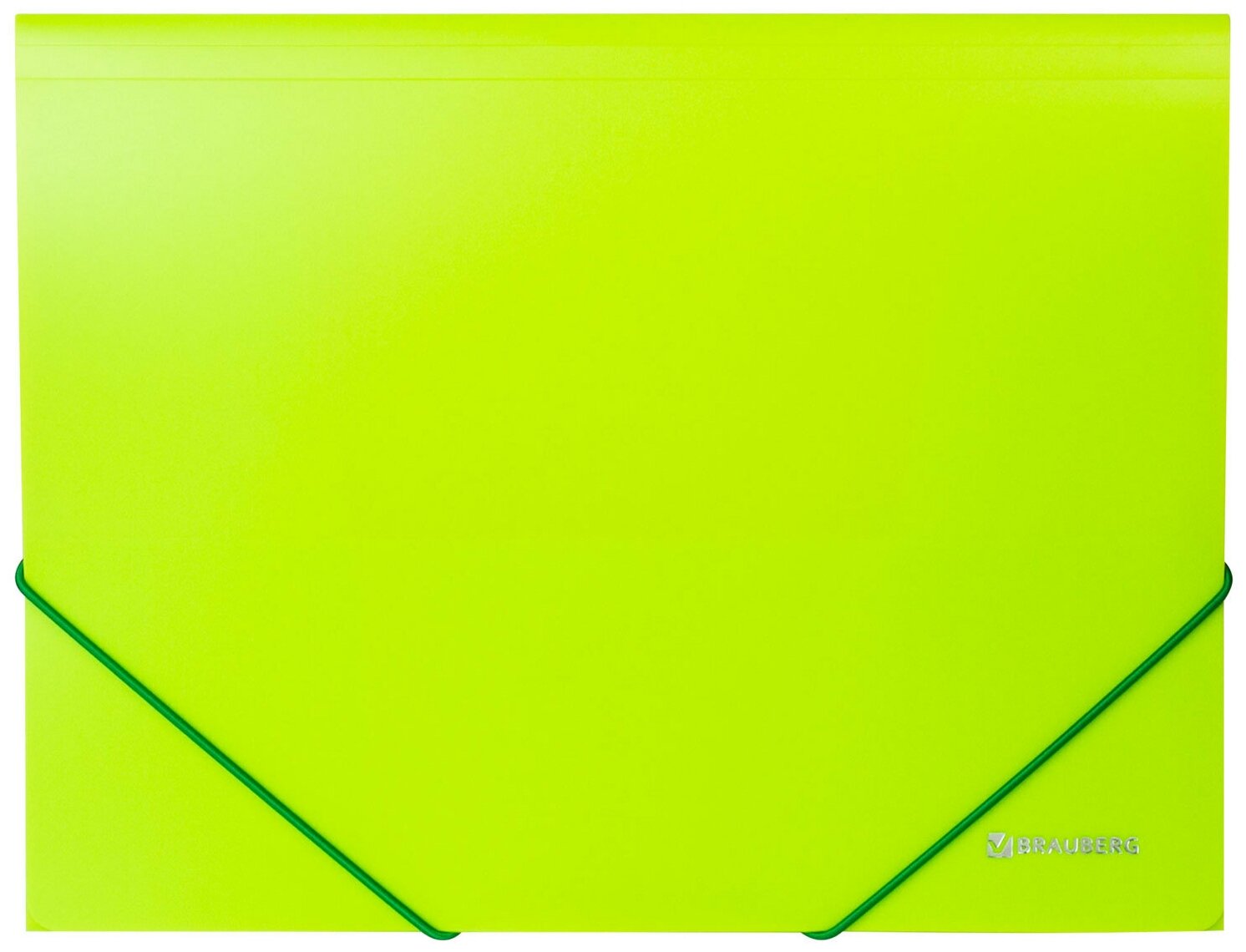 Папка на резинках от BRAUBERG для хранения документов. Клапаны папки надежно удерживают документы внутри. Изготовлена из плотного непрозрачного пластика.