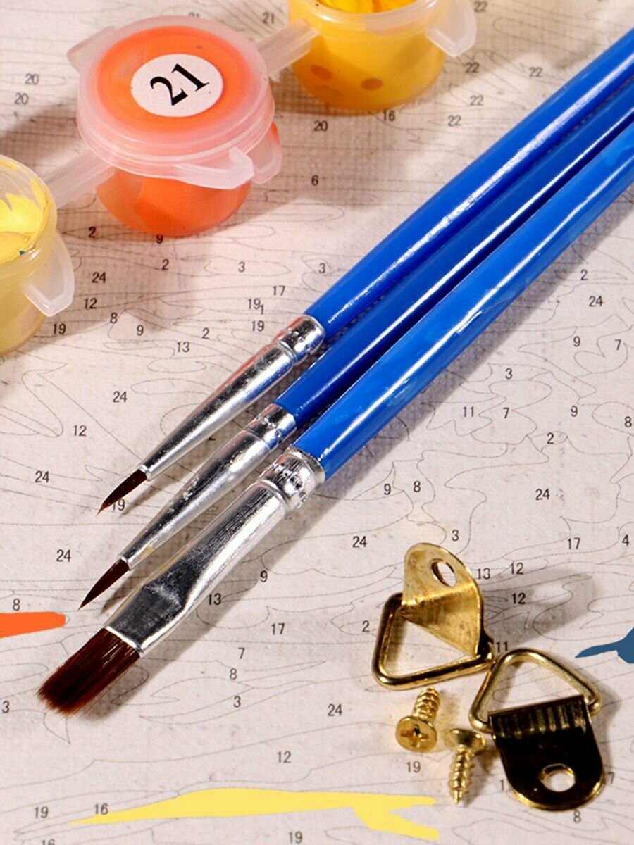 В набор входят: холст (30х40 см), акриловые краски, 3 кисти, крепеж, лист для тренировки.