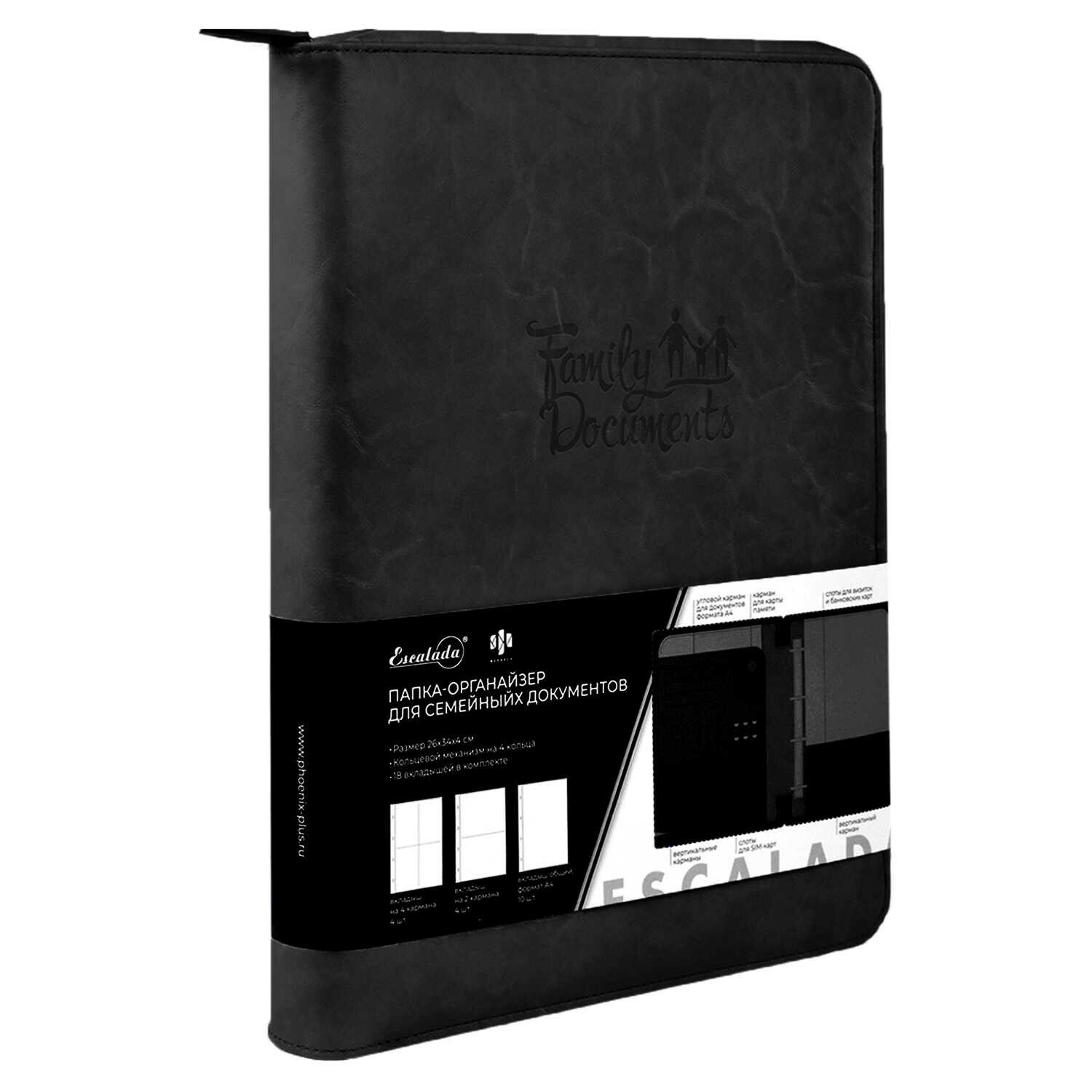 Папка-органайзер для семейных документов (А4 кожзам черный) (52908) Феникс+