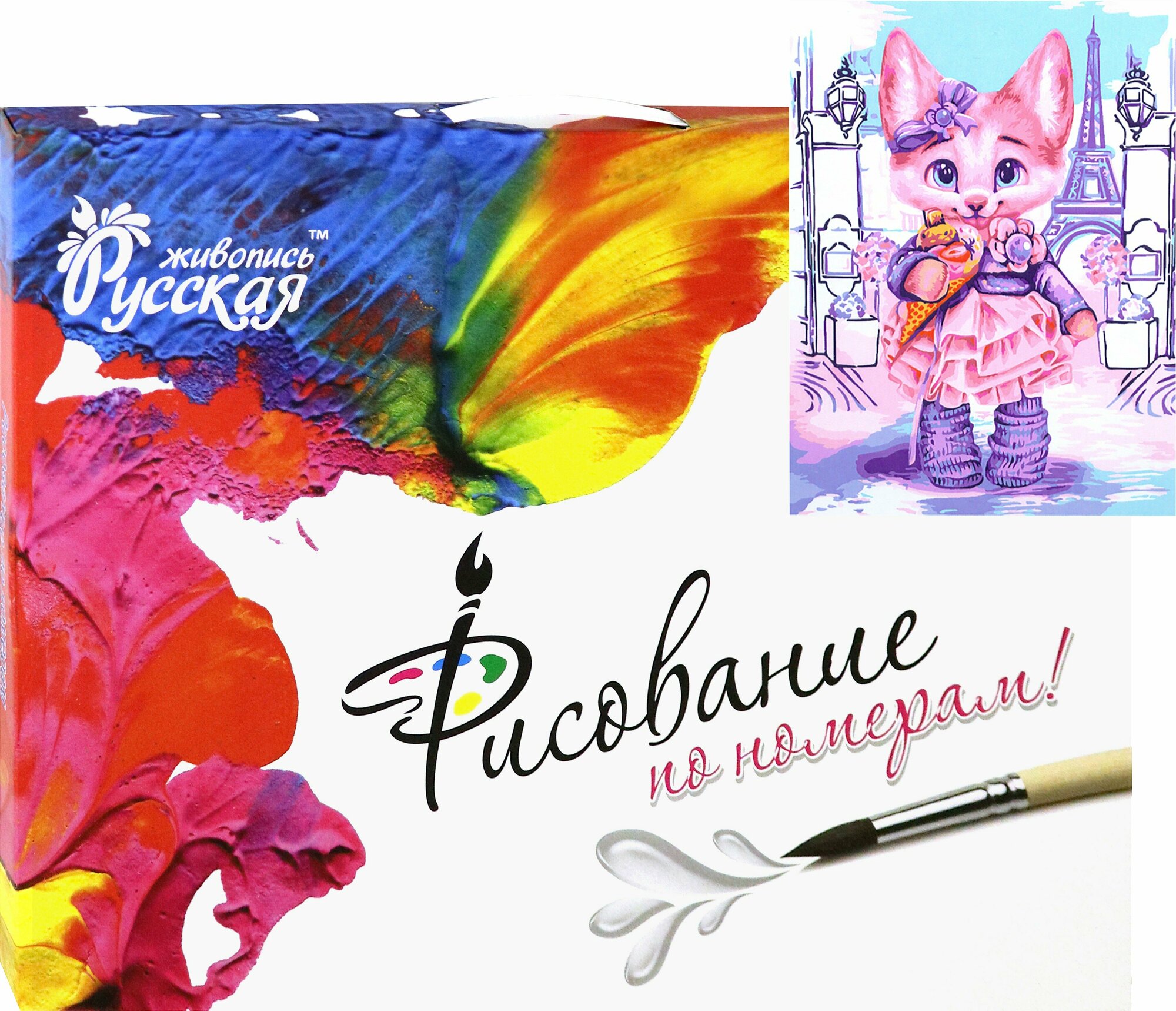 Состав: грунтованный холст с контурным изображением, в котором области пронумерованы цифрами, деревянный подрамник, плоский лайнер, комплект пронумерованных акриловых красок, комплект кистей (3 шт.) разной размерности, контрольный лист и инструкция, защитный лак.