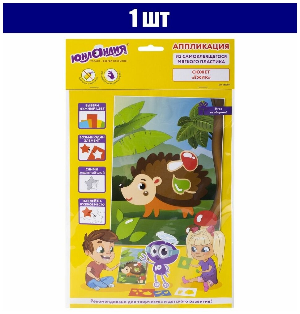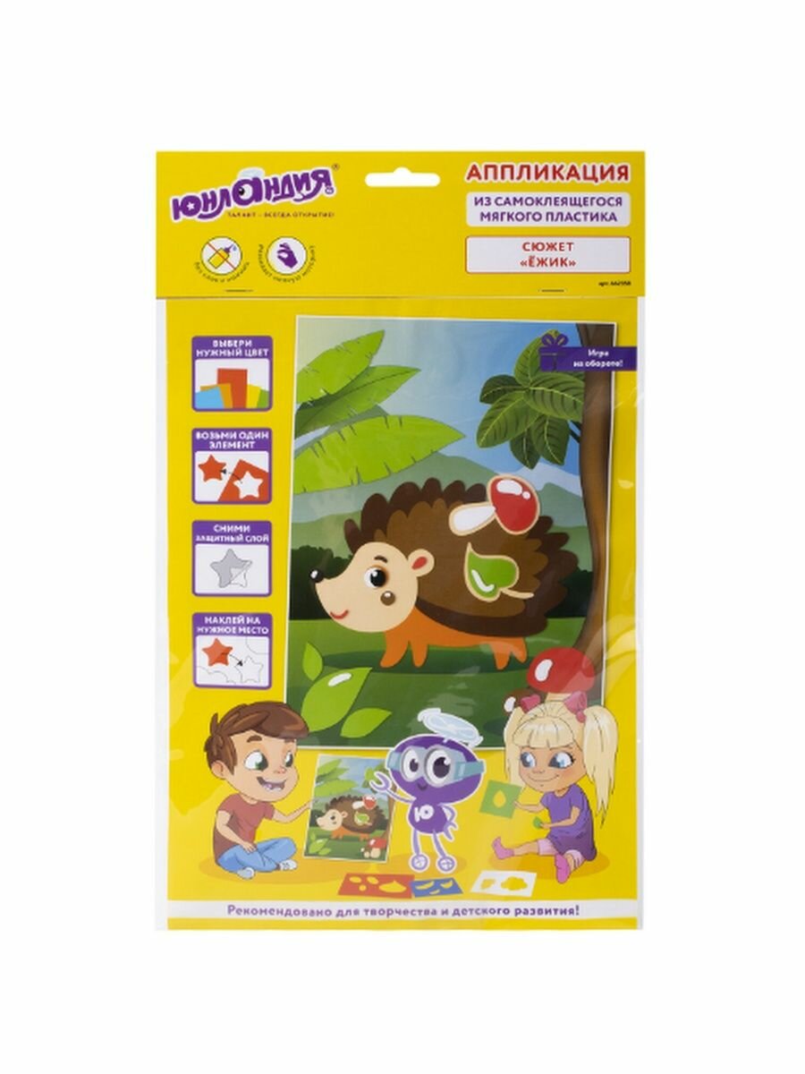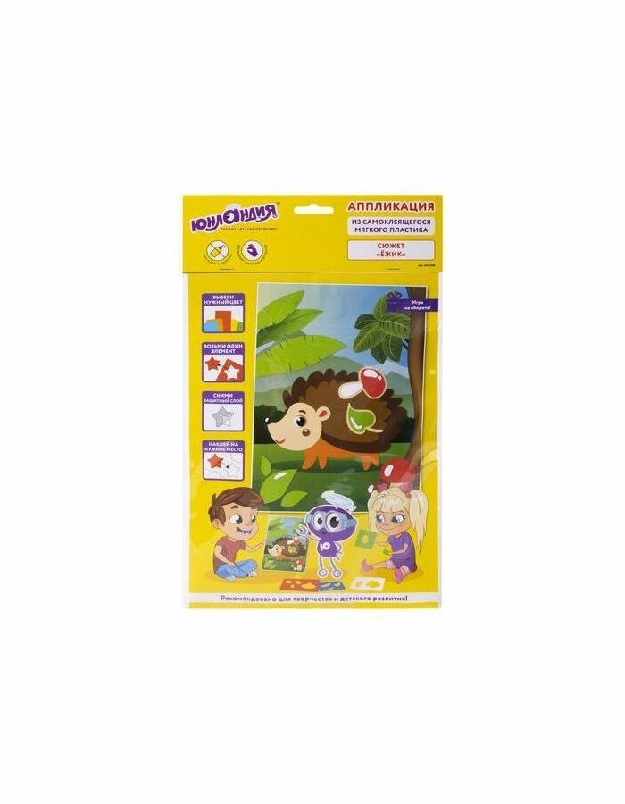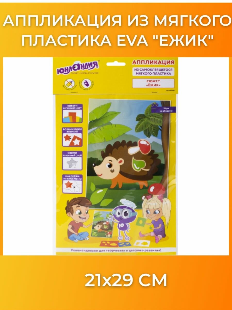 Аппликация из мягкого пластика EVA ЮНЛАНДИЯ "Ёжик" - это весёлый и занимательный способ развития мелкой моторики, аккуратности, цветового восприятия и фантазии ребёнка. Все элементы в составе самоклеящиеся, для работы не требуются ножницы и клей.