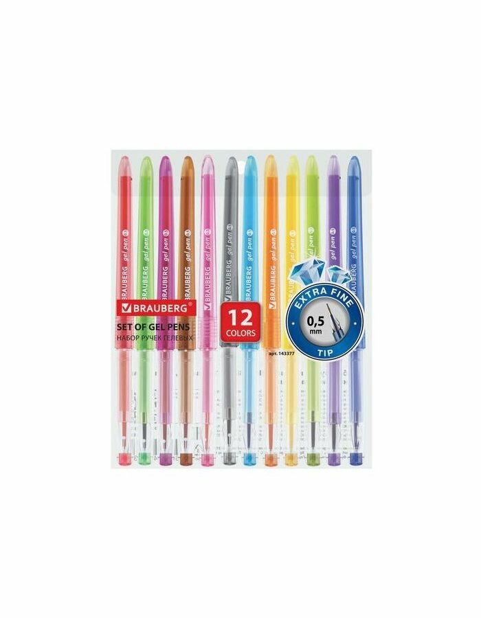 Ручки гелевые "DIAMOND" 12 цветов (143377) Brauberg