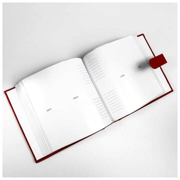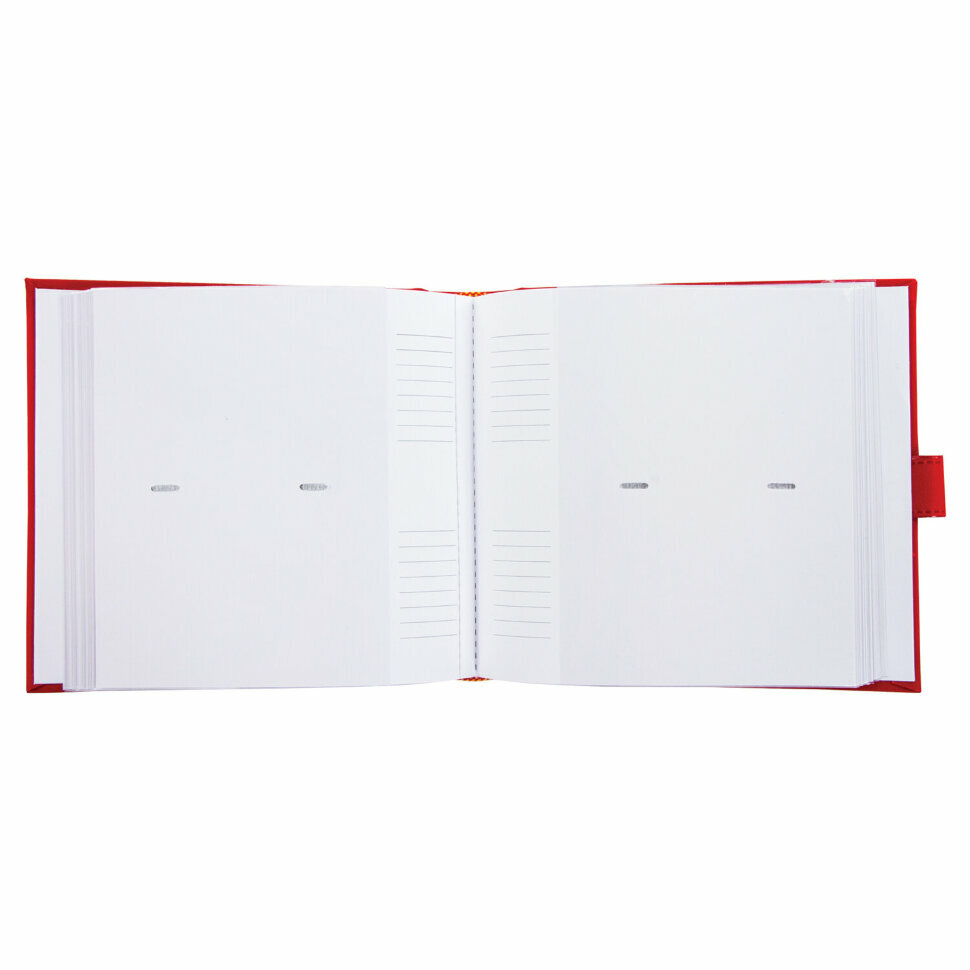 Состоит из 50 бумажных листов размером 15,5х21 см с карманами и вмещает 200 фотографий размером 10х15 см по 2 штуки на странице. Имеются поля для записей. Обложка фотоальбома стилизована под кожу красного цвета. Фотоальбом с книжным переплетом отличается повышенной прочностью и долгим сроком службы. Размер — 30х26 см.