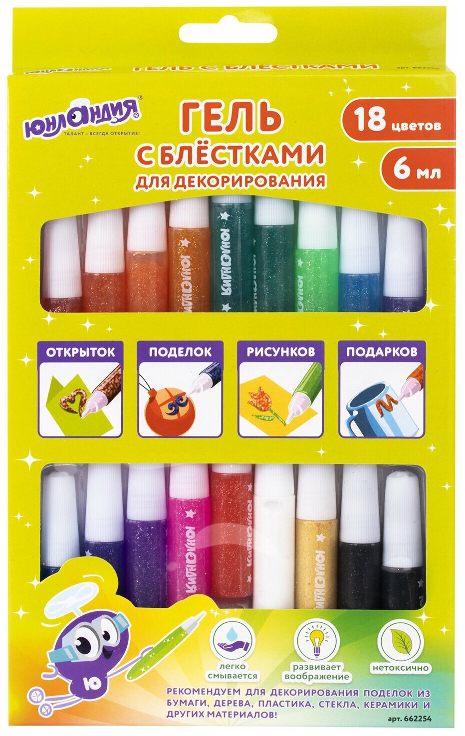 Гель с блестками 18 цветов по 6 мл (662254) Brauberg
