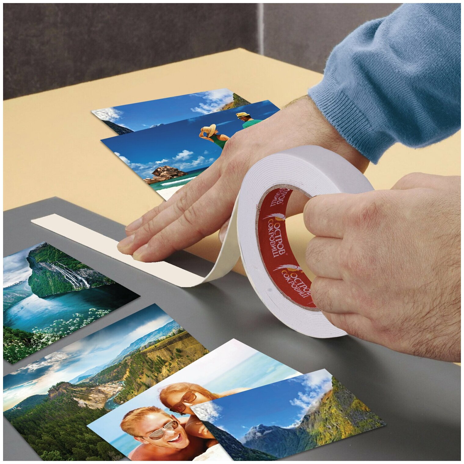 Двухсторонняя клейкая лента на вспененной основе ОСТРОВ СОКРОВИЩ применяется для оформительских и декоративных работ, крепления мелких элементов, составления коллажей и многого другого.