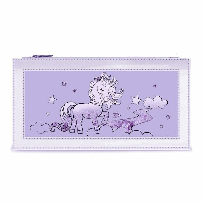 Пенал школьный, арт.51227/ 25 единорог (без наполнения, 22x12 см, искусственная кожа, ПВХ, молния, пересыпающиеся пайетки под прозрачным ПВХ, шелкография в две краски, ПЭТ-пакет).