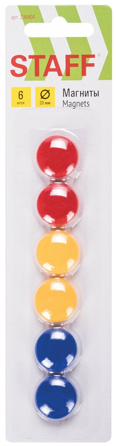Магниты STAFF диаметр 20 мм, 8 шт, цвета АССОРТИ, в блистере.
