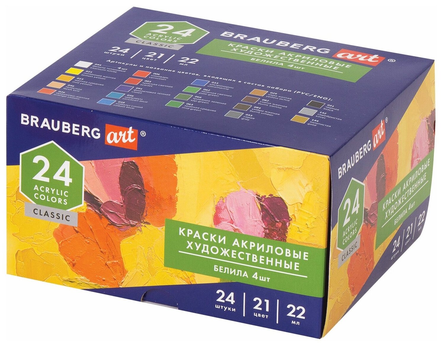 Краски акриловые художественные Brauberg Art Classic Набор 24 шт. 21 цвет в тубах 22 мл. (191722)