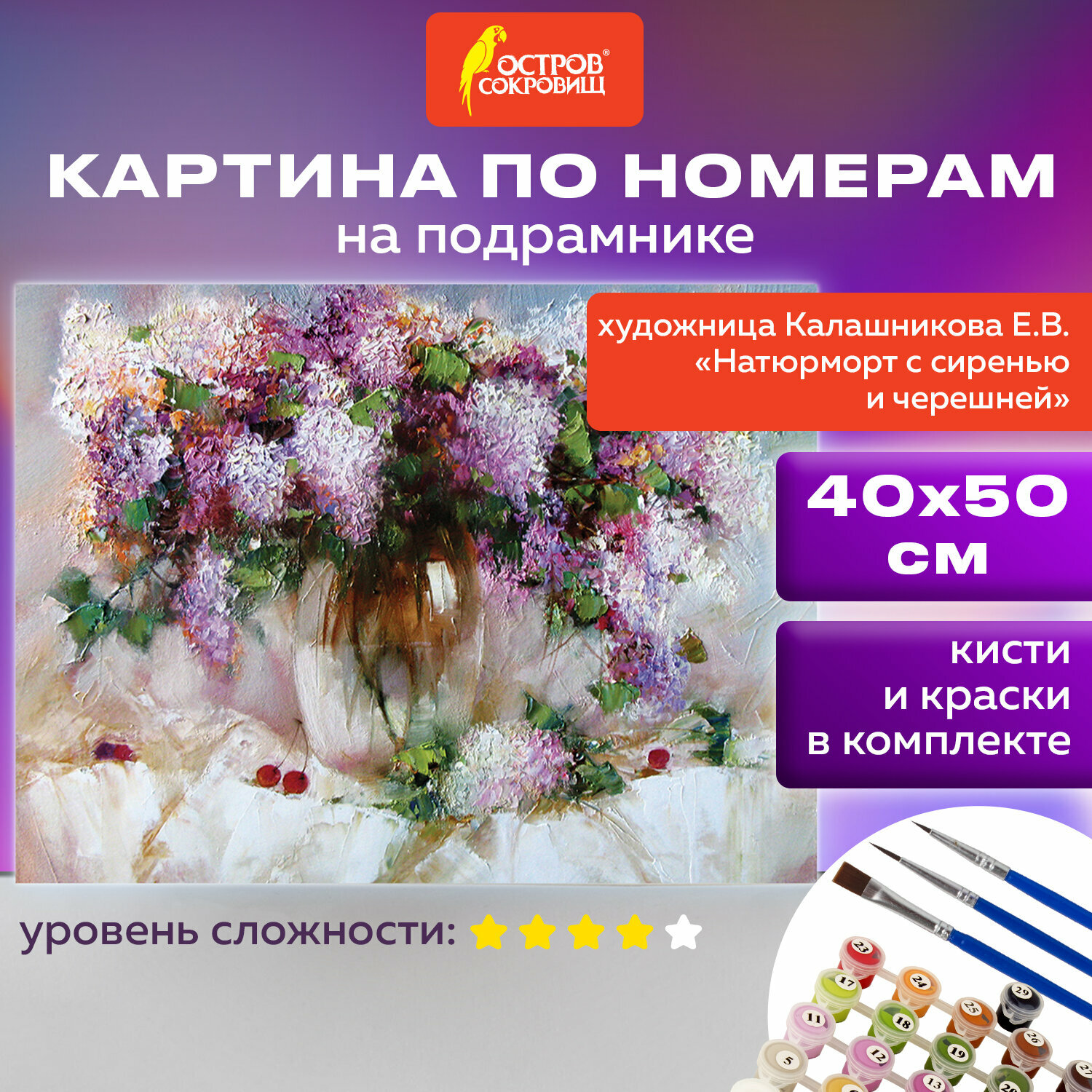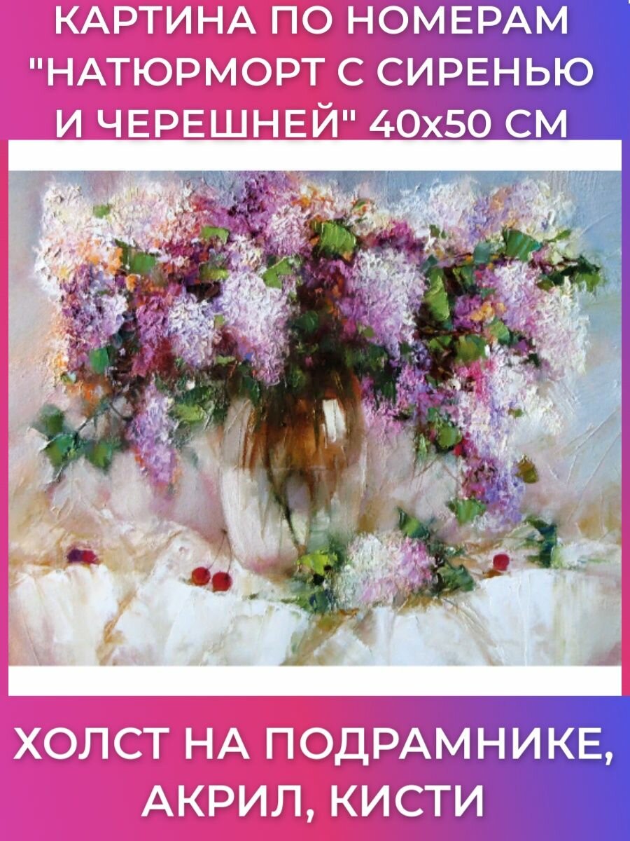 Сервис сравнения цен СкидкаГИД предлагает сравнить цены на товар «Картина по номерам 40х50 см. "Натюрморт с сиренью и черешней" на подрамнике акрил кисти (662912) Brauberg»