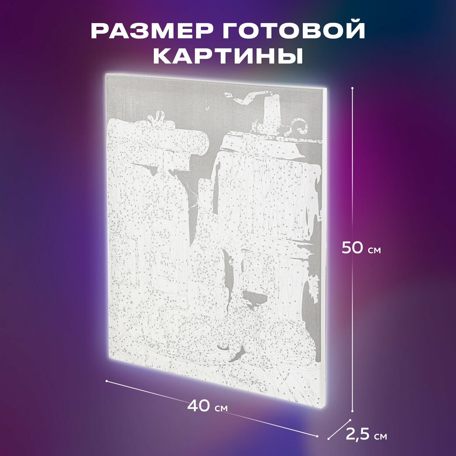 Комплектация: акриловые краски, кисть, крепеж, лист бумаги для тренировки, холст на подрамнике