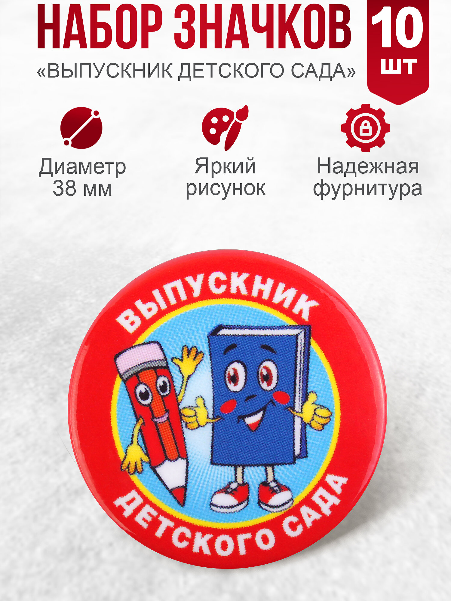 Значок 38 мм в наборе 10 штук Выпускник детского сада/ карандаш Символик