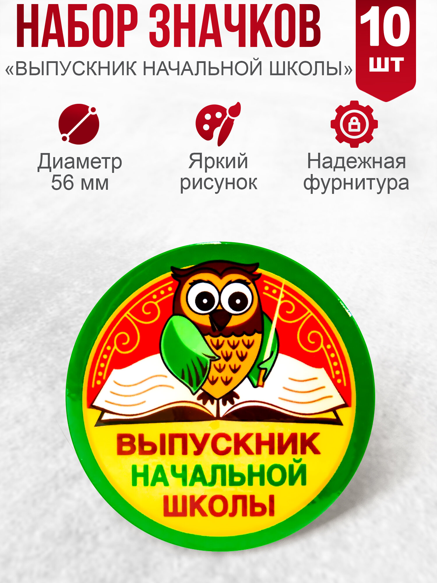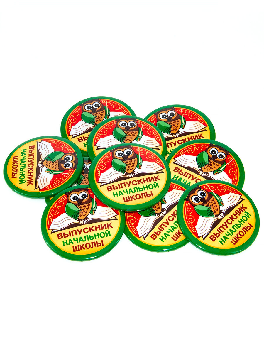 Значок 56 мм в наборе 10 штук Выпускник начальной школы/ сова Символик