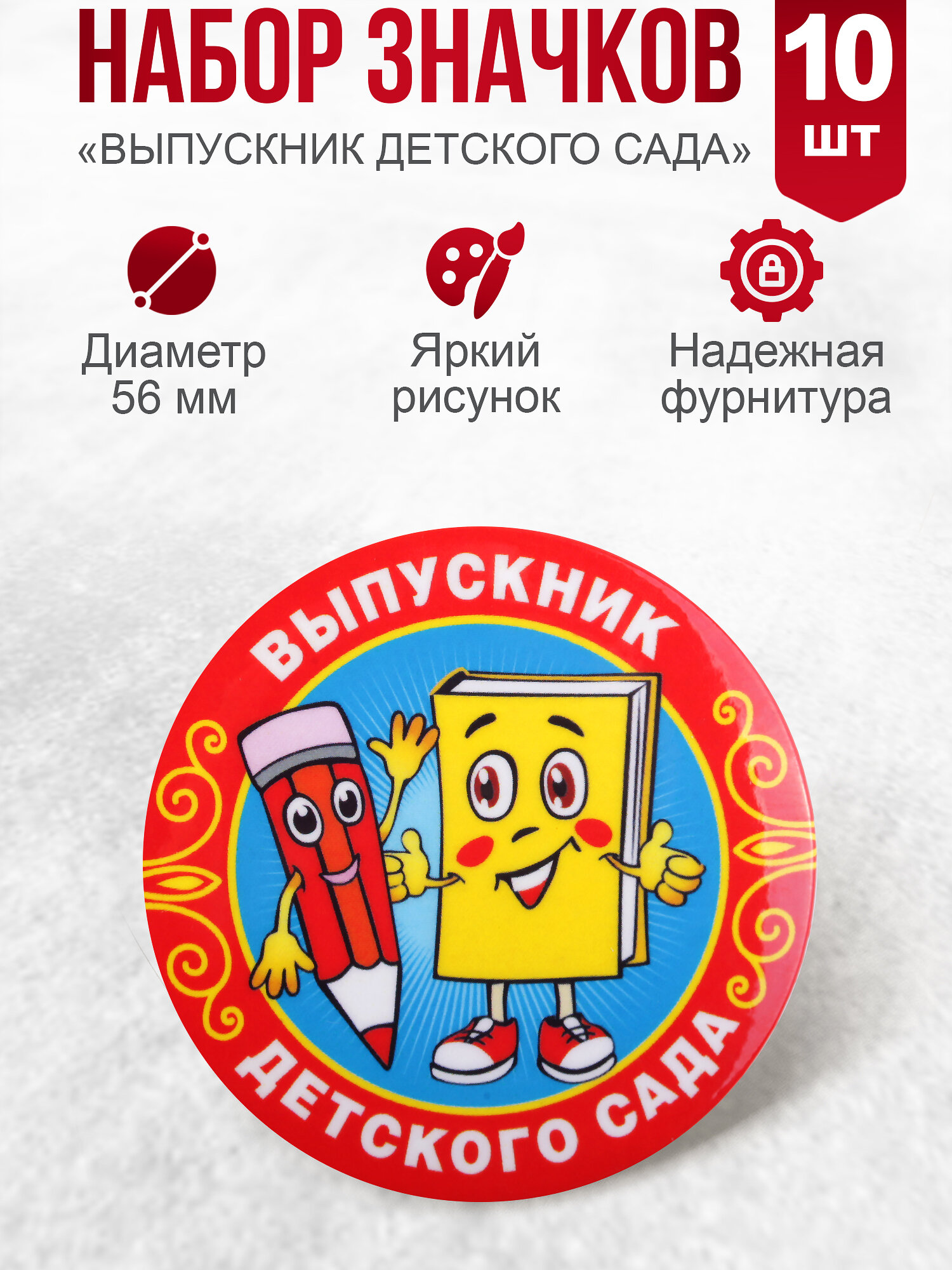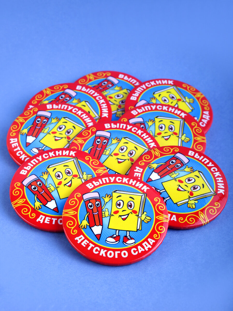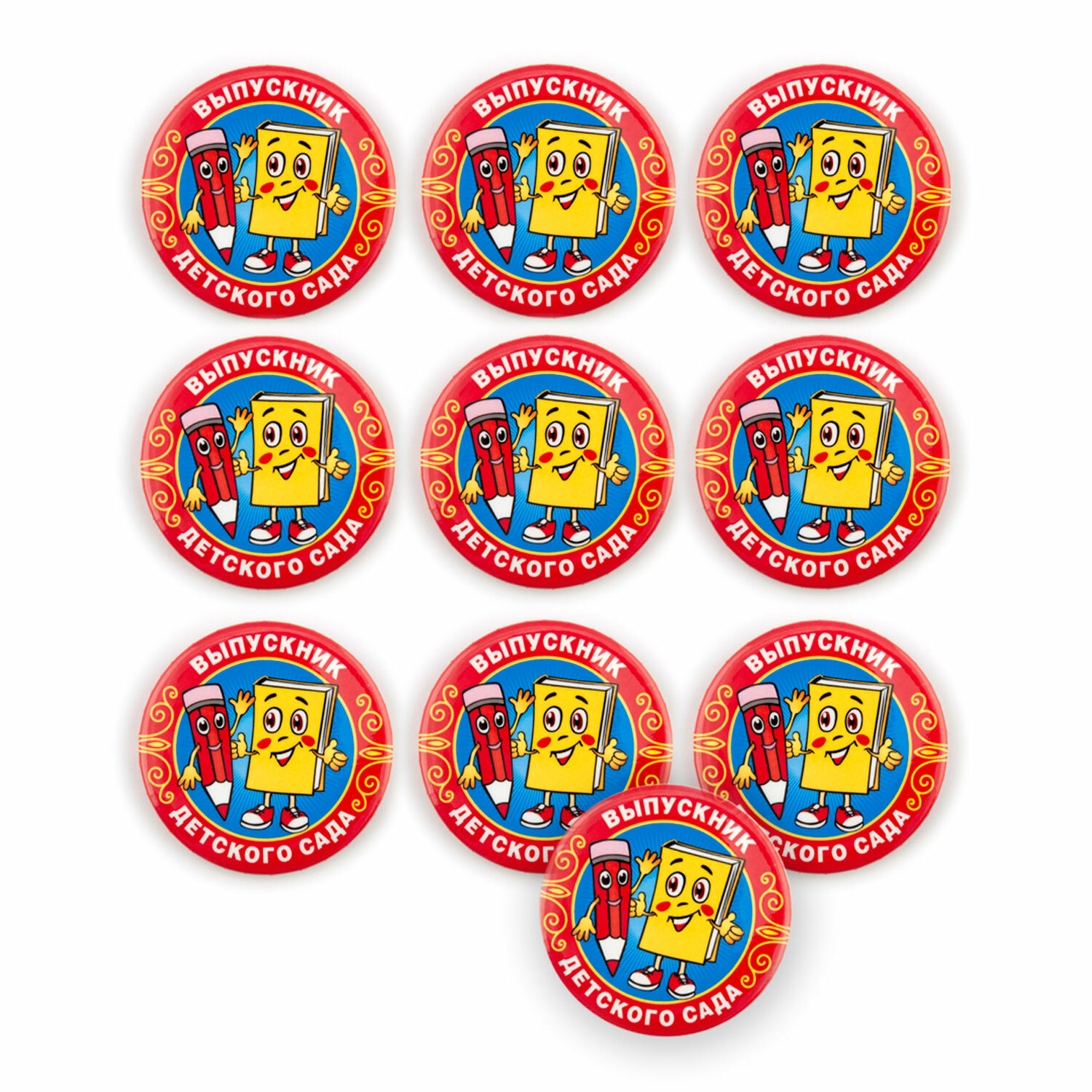 Значок 56 мм в наборе 10 штук Выпускник детского сада/ карандаш Символик