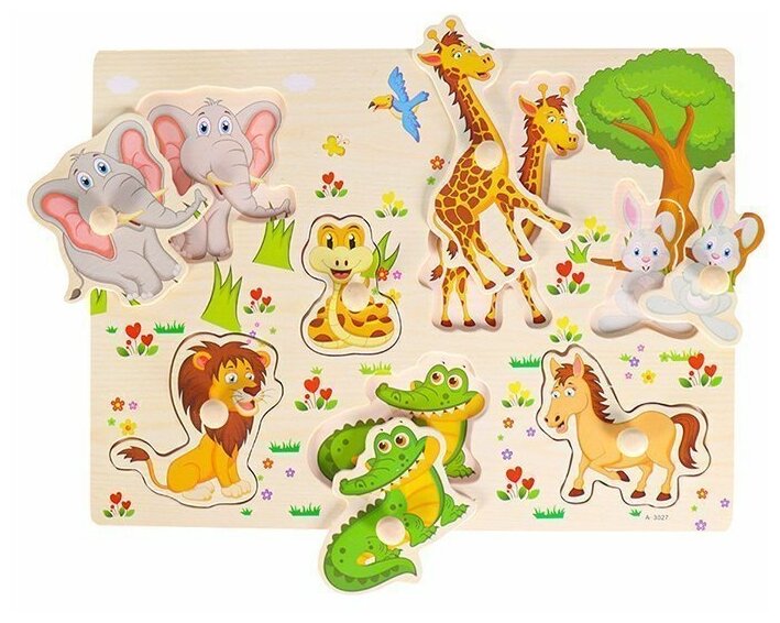 Деревянная рамка-вкладыш "САФАРИ" придется по душе всем малышам! Собирая картинку, ребенок будет вставлять каждый вкладыш в отверстие соответствующей формы, учась подбирать отдельные составные части по размеру, форме и цвету. Игра с такой рамкой-вкладышем поможет деткам развить внимание, воображение, логическое мышление, усидчивость, цветовосприятие и моторику.