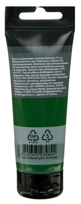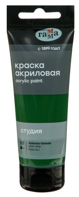 Краска акриловая "Студия" (75 мл) зеленая темная (280220537) ГАММА
