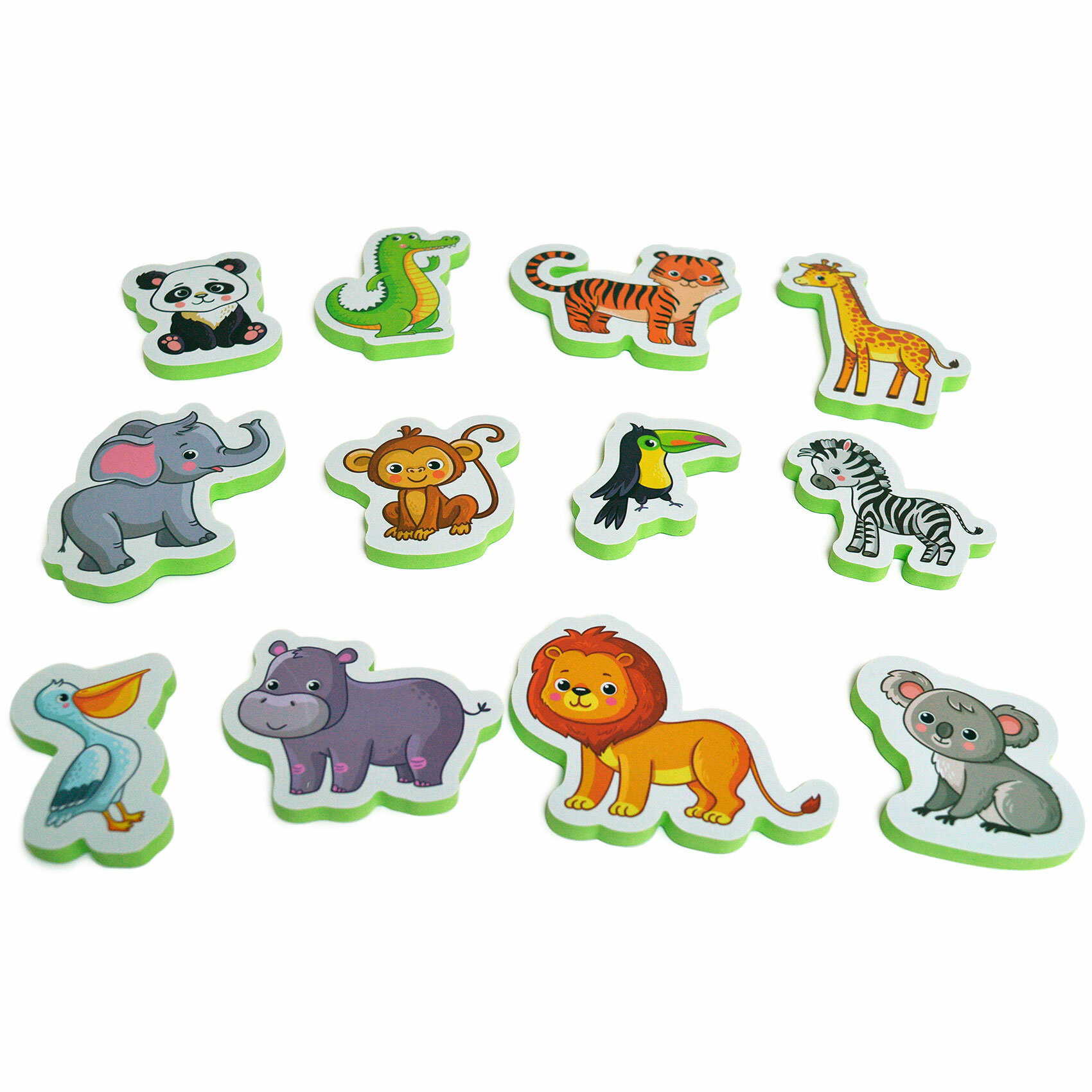 Перед вами набор игрушек для ванны, с которым можно купаться, а ещё использовать как рамку с вкладышами. Он изготовлен из мягкого пластика ЭВА. Благодаря материалу, игрушки могут плавать и прилипать к стенкам ванны, керамической плитке и другим гладким поверхностям, которые не боятся воды. Лёгкие, приятные на ощупь игрушки безопасны для детей.