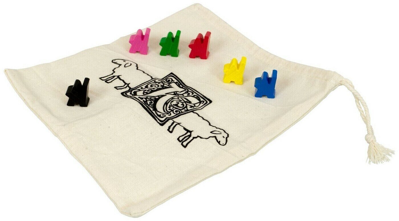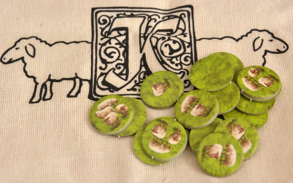- 6 фишек пастухов, 16 жетонов овец, 2 жетона волков и мешочек пастбищ: постепенно увеличивайте свои стада и вовремя загоняйте их в овчарню - даже лучший пастух не справится с диким волком!