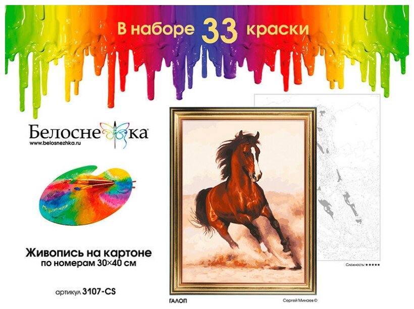 Сервис сравнения цен СкидкаГИД предлагает сравнить цены на товар «Живопись на картоне "Галоп" 30х40 см (3107-CS) Белоснежка»
