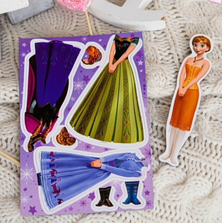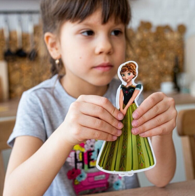 На магнитной основе в виде героев мультсериала Холодное сердце ребенок сможет примерить на игрушку разный дизайн одежды.