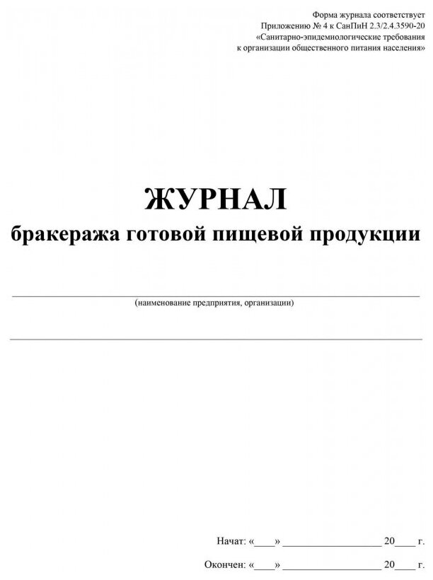 Журнал бракеража готовой пищевой продукции. СанПиН 2.3/2.4.3590-20 (200 стр.) Учитель