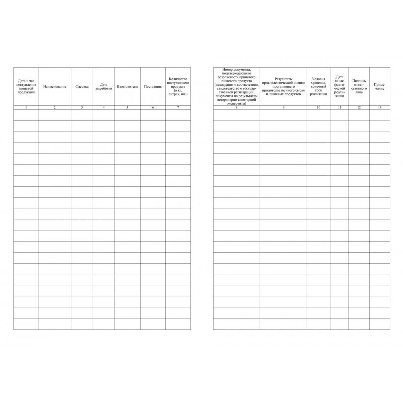 Результаты бракеража скоропортящейся пищевой продукции фиксируются в журнальных графах: дата и час поступления пищевой продукции, наименование, фасовка, дата выработки, изготовитель, поставщик, количество поступившего продукта (в кг, литрах, шт.), номер документа, подтверждающего безопасность принятого пищевого продукта (декларация о соответствии, свидетельство о государственной регистрации, документы по результатам ветеринарно-санитарной экспертизы), результаты органолептической оценки поступившего продовольственного сырья и пищевых продуктов, условия хранения, конечный срок реализации, дата и час фактической реализации, подпись ответственного лица, примечание.