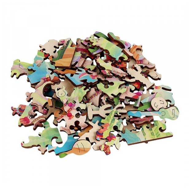 Фигурный пазл отличается от стандартного необычной формой деталей. Кроме того, часть деталей выполнены в форме предметов, связанных с тематикой картинки. Детали пазла выполнены из фанеры. Рисунок нанесен прямо на дерево с помощью специального принтера, он долговечен и не сотрется даже после многократных сборок. Такой пазл понравится и детям и взрослым, ведь сборка доставляет визуальное и тактильное удовольствие. Число деталей: 61. Размер собранного пазла: 18х18 см. Материал: фанера. Упаковка: картонная коробка 17х12,5х4 см.