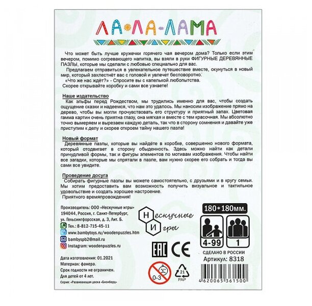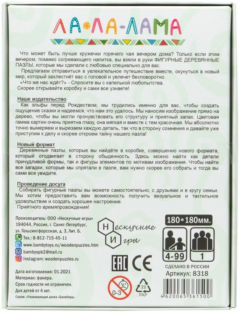 Фигурный деревянный пазл. Ла-ла-лама (8318) Нескучные игры