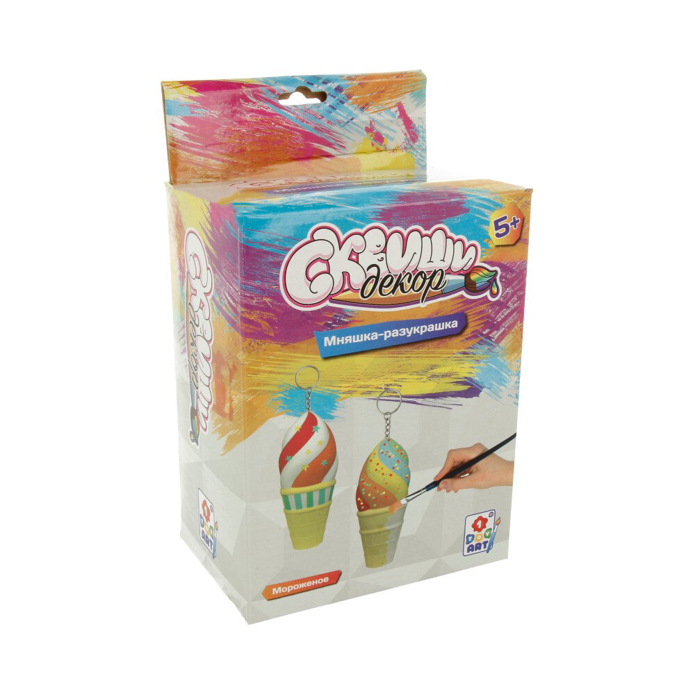 В наборе: сквиши для раскрашивания, краски (6 шт.), кисточка, инструкция.