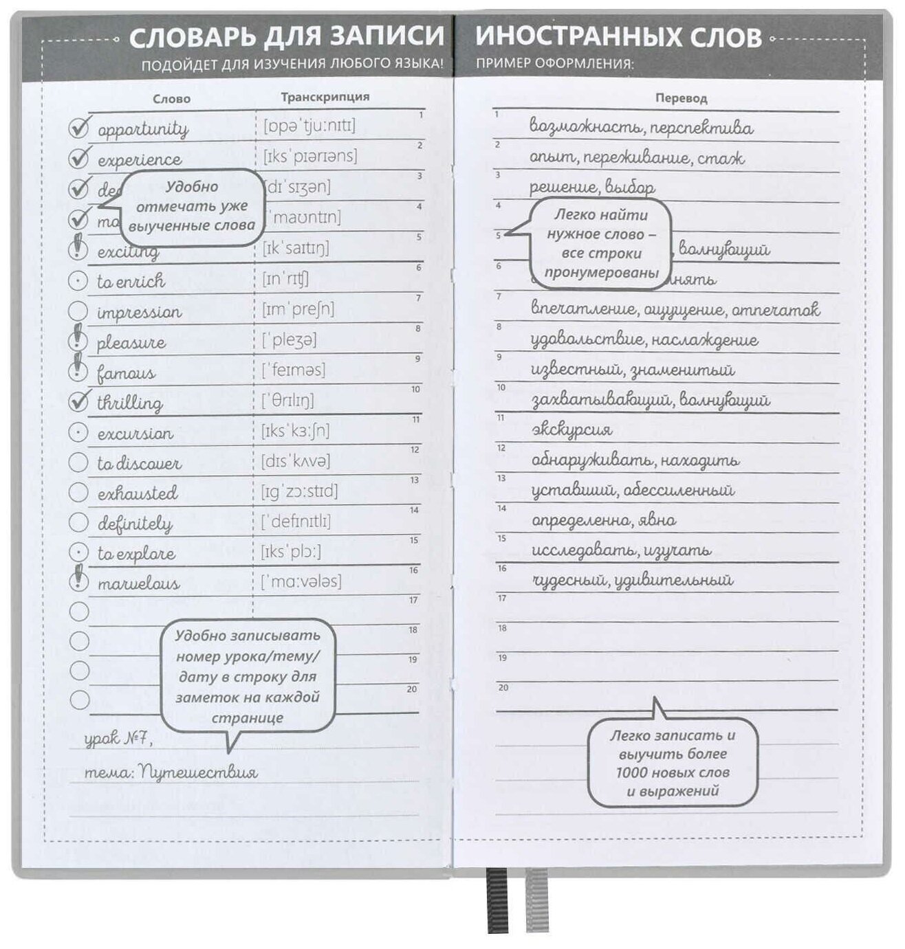 Словарь для записи иностранных слов 64 листа 86х164 мм СЕРЕБРЯННЫЙ (57333) Феникс+