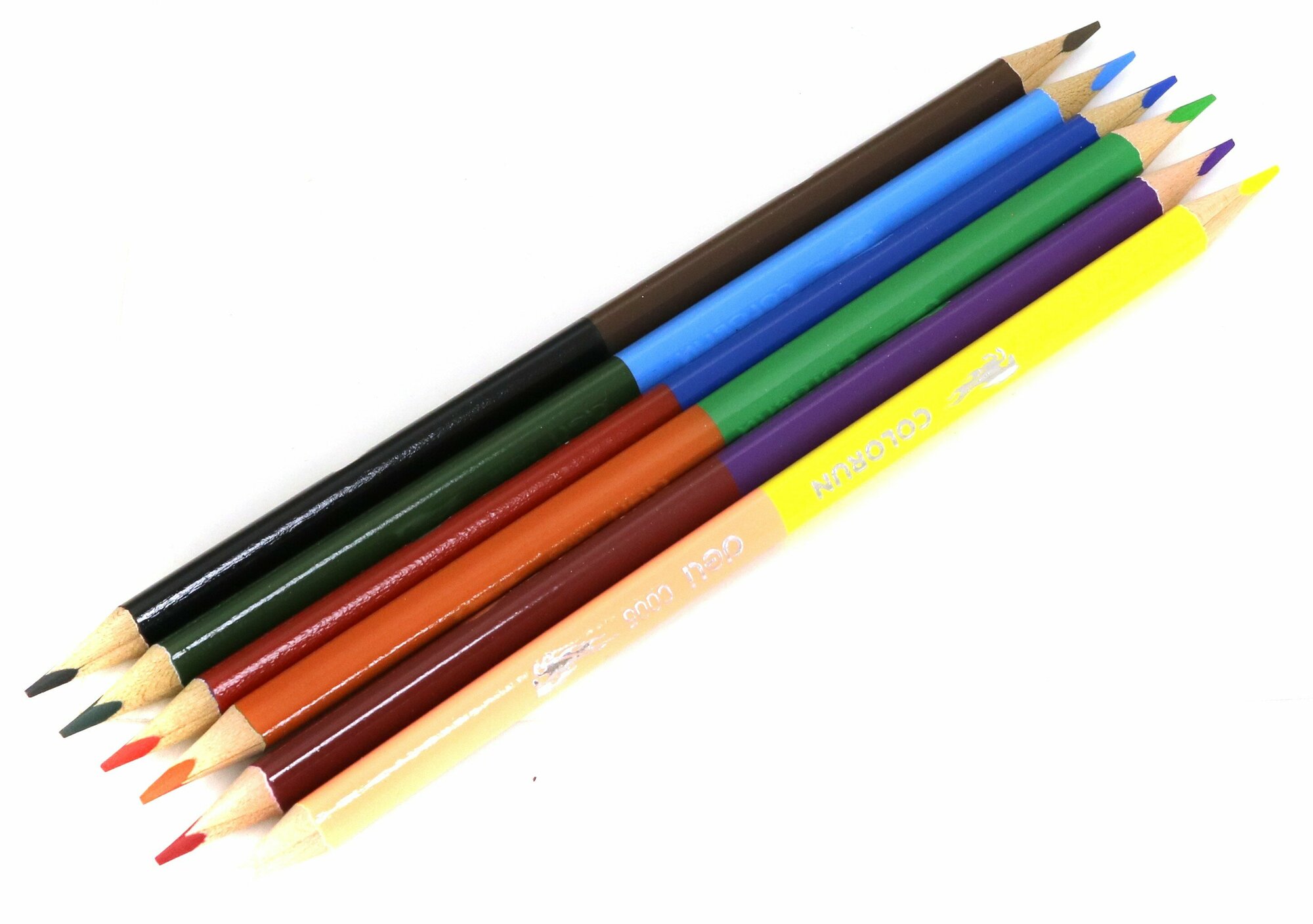 Карандаши понравились. Пишут мягко, цвета насыщенные. Удобно брать с собой в дорогу, в гости, так как карандашей шесть, а цветов 12. Цвета: желтый, светло-розовый (ближе к телесному), салатовый, темно-зеленый, голубой, синий, красный, вишневый, фиолетовый, светло-коричневый, коричневый,черный. Покупкой очень довольна