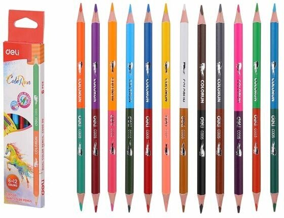 Карандаши цветные двухсторонние Deli ColoRun из высококачественной липы.