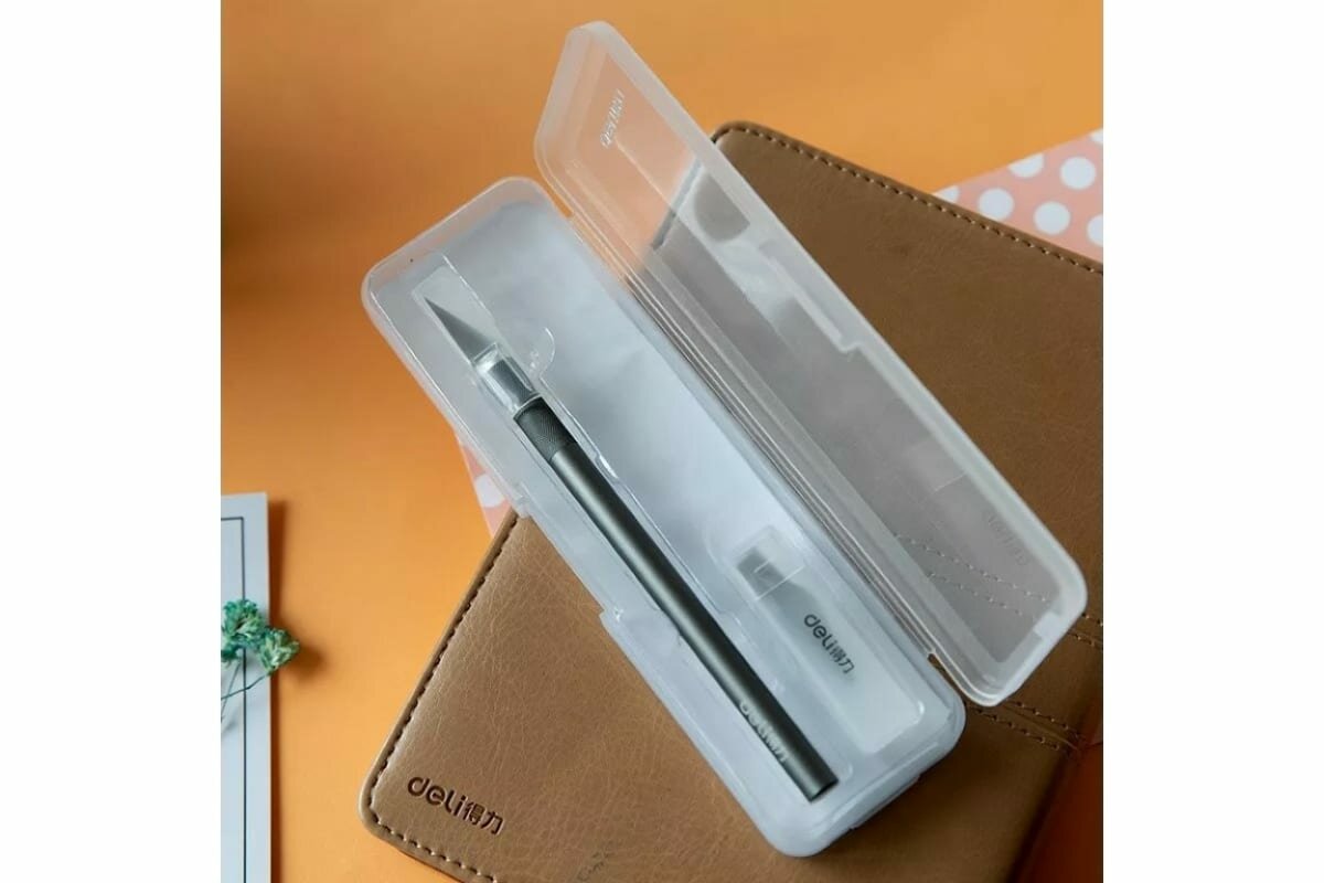 Резак-скальпель Deli 2102, 10 сменных лезвия, сталь, пласт.кор.