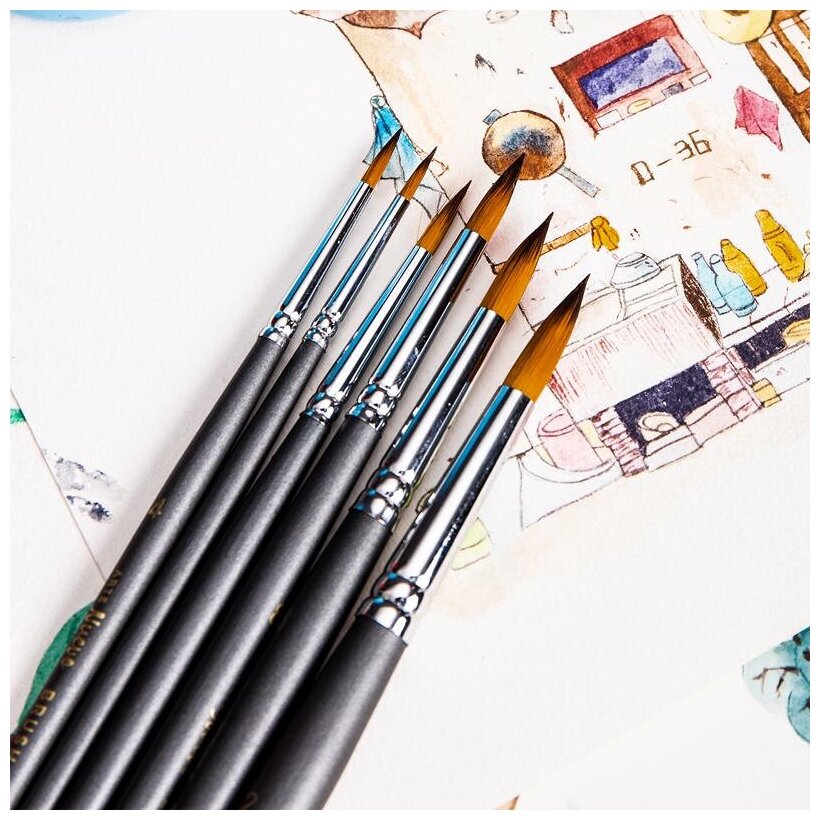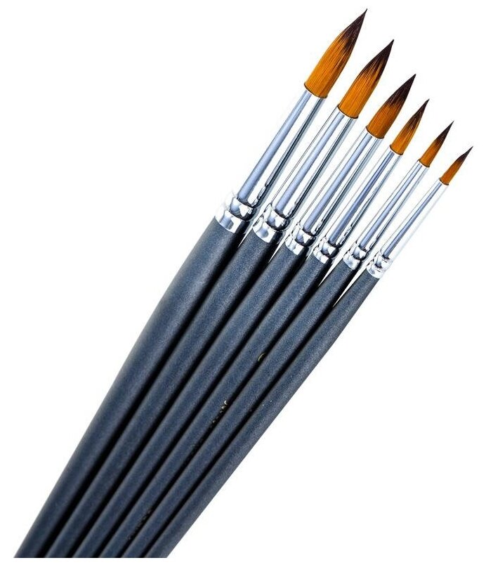 Набор из 6 круглых кистей с волосяным пучком из нейлона.