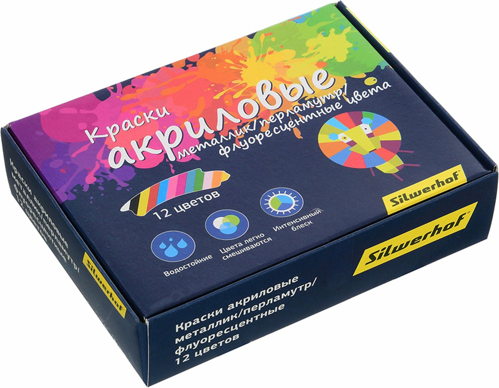 На сегодняшний день товар «Краски акриловые. Металлик перламутр флуоресцентные цвета 12 цветов (961134-12) Silwerhof» можно купить с кешбеком в 1 магазине: Яндекс.Маркет
