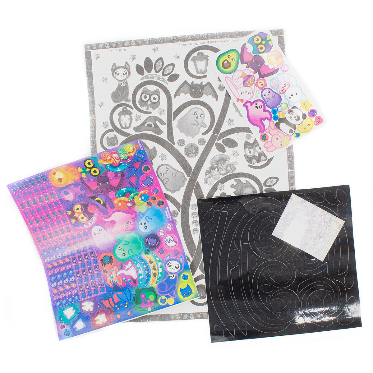 «Мистическое дерево» - набор для изготовления картины со стикерами-персонажами, нарисованными в стиле «kawaii».