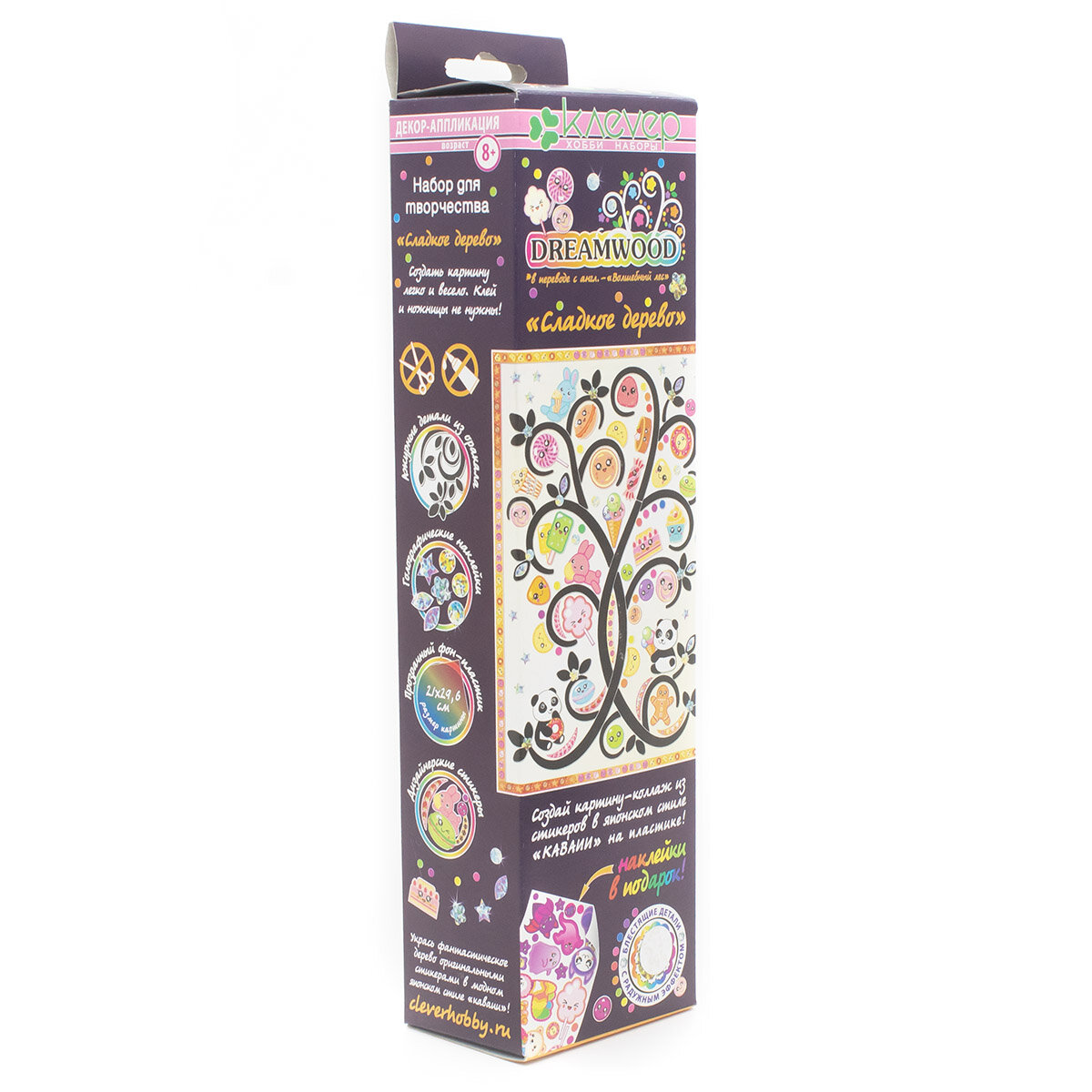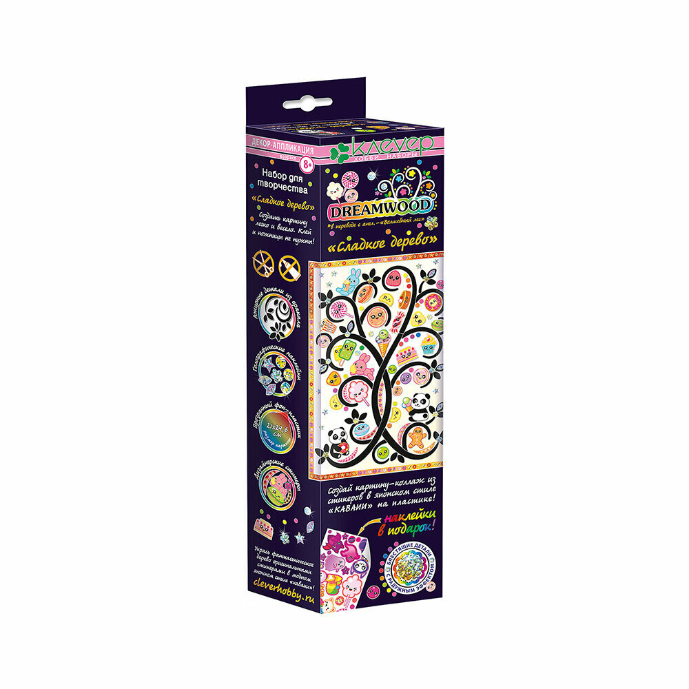 Сделайте картину 'Сладкое дерево' от бренда 'Клевер' – это быстро и просто. Картина с яркими объемными элементами станет украшением детской комнаты или милым подарком. В комплекте уже прилагаются все элементы и материалы, а также инструкция.
