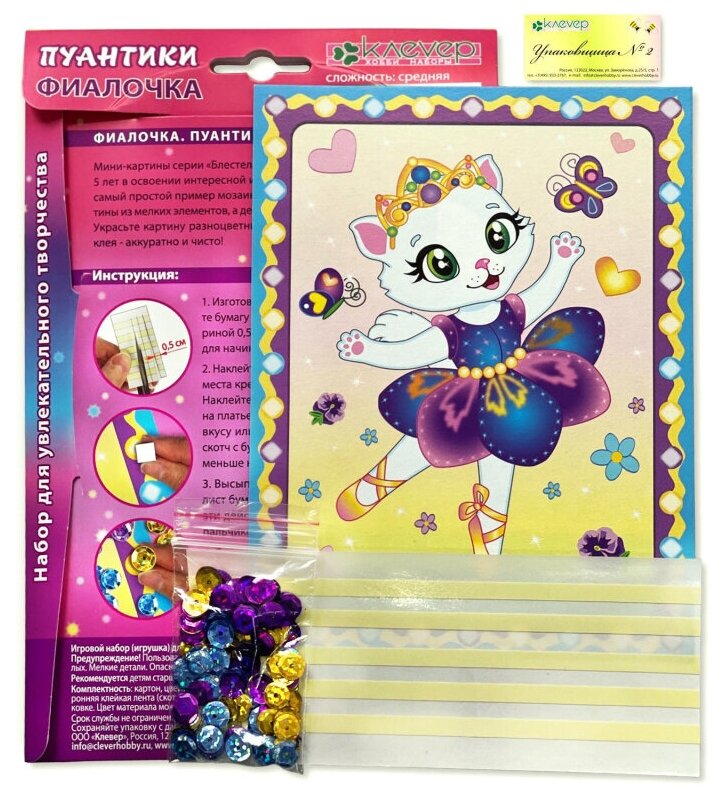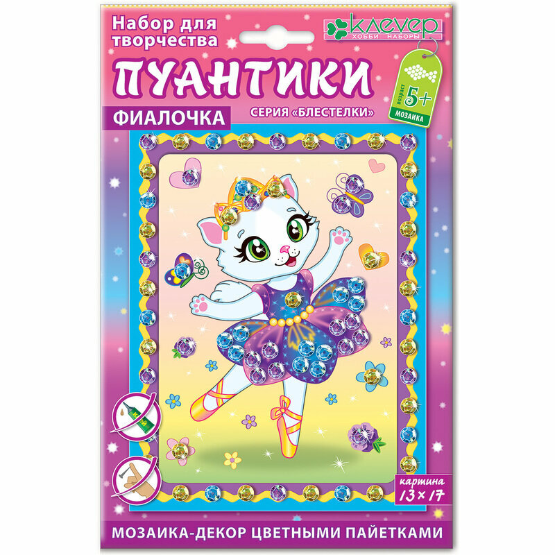 | Состав набора | картонная основа (фон); разноцветные пайетки; двусторонняя клейкая лента (скотч) |