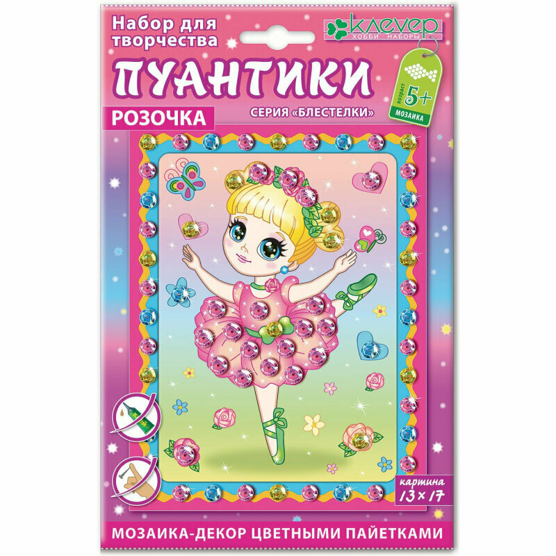 Мини-картина «Розочка. Пуантики» - первые шаги ребёнка старше 5 лет в освоении техники мозаики.