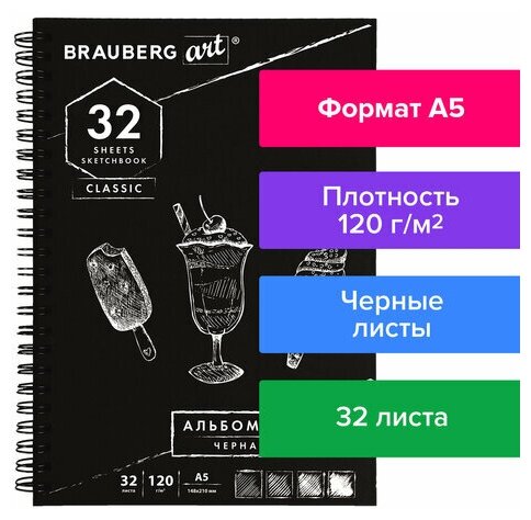 На сегодняшний день товар «Альбом для эскизов 32 листа гребень черная бумага (128952) Brauberg» можно купить с кешбеком в 1 магазине: Яндекс.Маркет