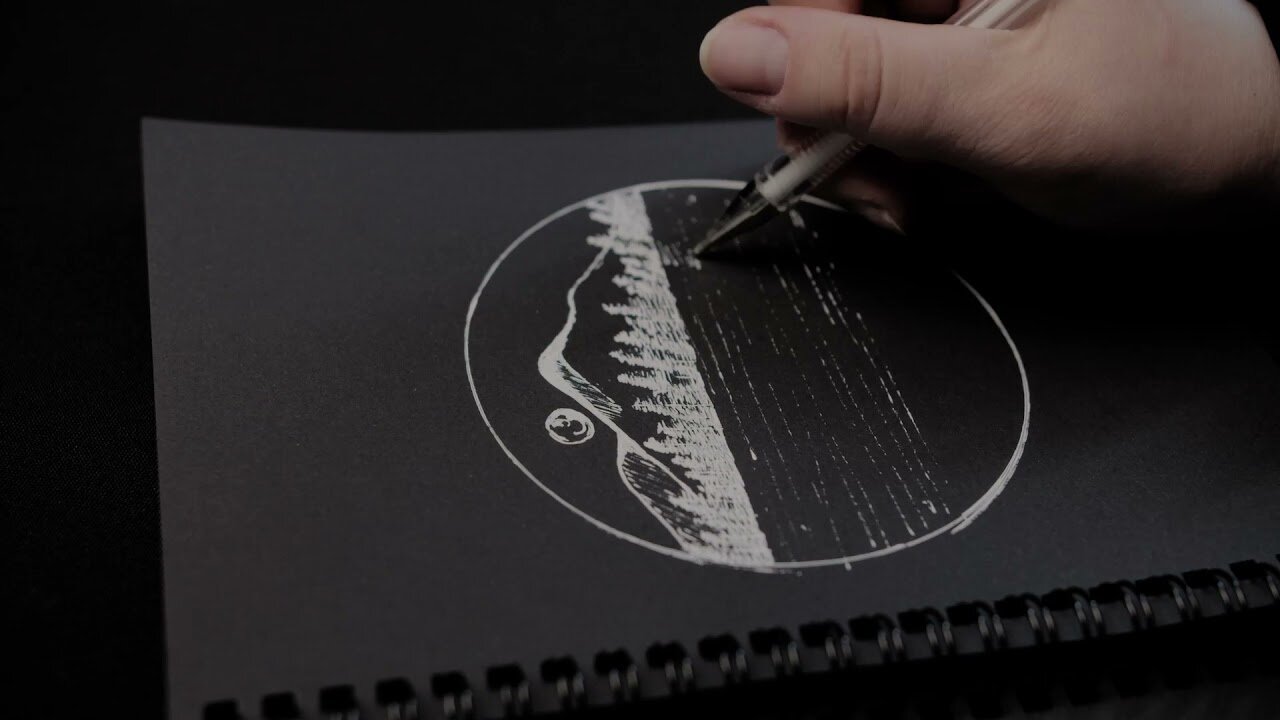Альбом для эскизов и графики с жесткой подложкой. Внутренний блок - специальная художественная гладкая бумага черного цвета. Предназначен преимущественно для работы с белыми графическими материалами (гелевые ручки, карандаши, мел, пастель и прочие).