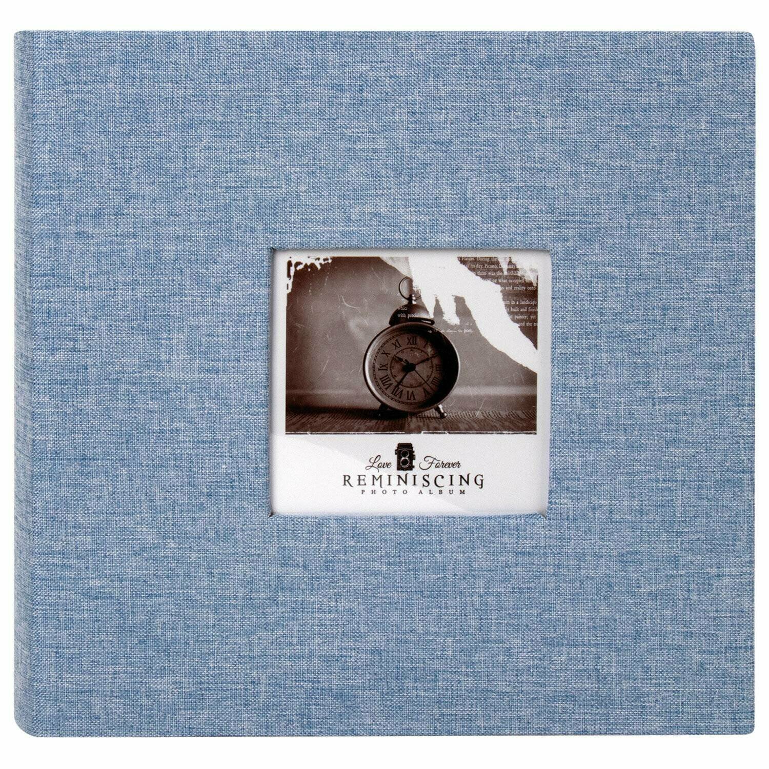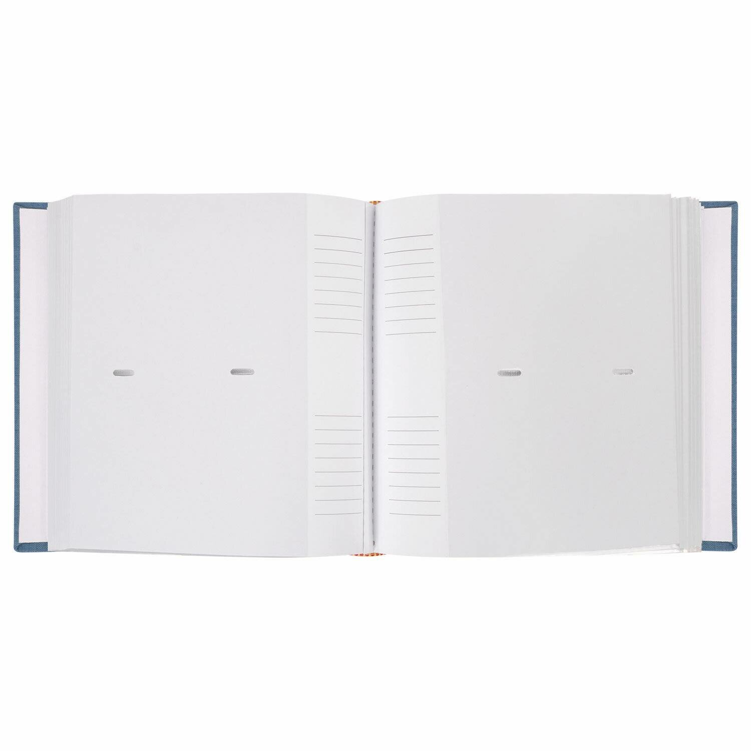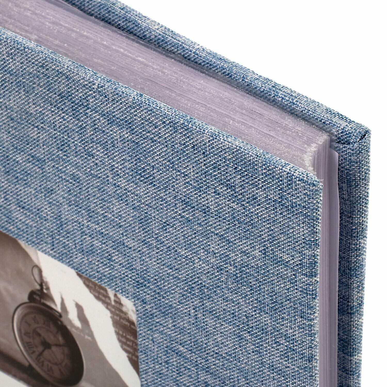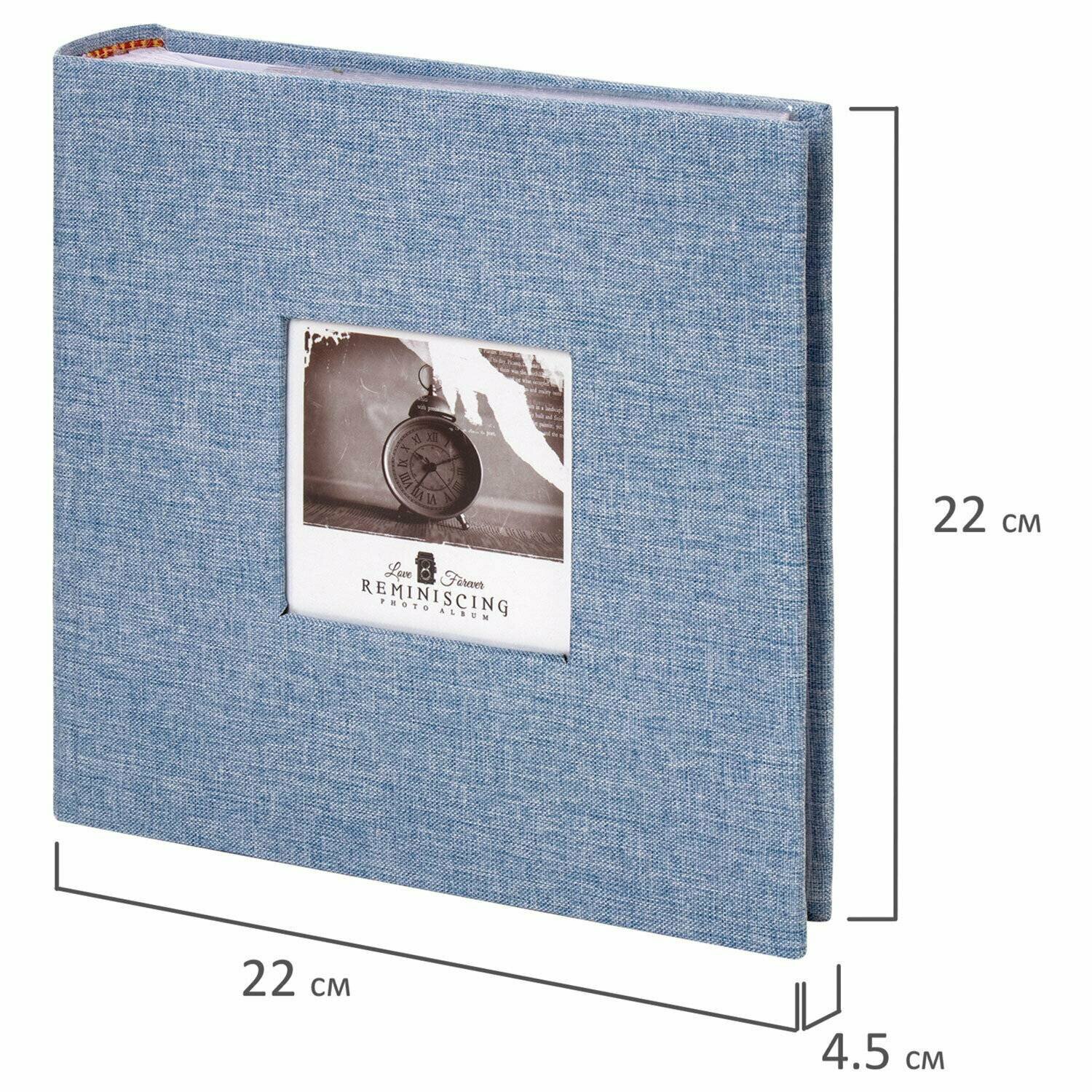 Состоит из 50 бумажных листов размером 15,5х21 см с карманами и вмещает 200 фотографий размером 10х15 см по 2 штуки на странице. Обложка фотоальбома выполнена из текстильного материала — джинсовой ткани. Фотоальбом с книжным переплетом отличается повышенной прочностью и долгим сроком службы. Размер — 22х22 см.